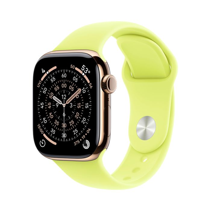 Apple Watch Series 11, 42 mm, Gold Titanium GPS+Cellular, Neon Yellow Sport Band (S/M)