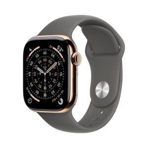 Apple Watch Series 11, 42 mm, Gold Titanium GPS+Cellular, Stone Gray Sport Band (S/M)