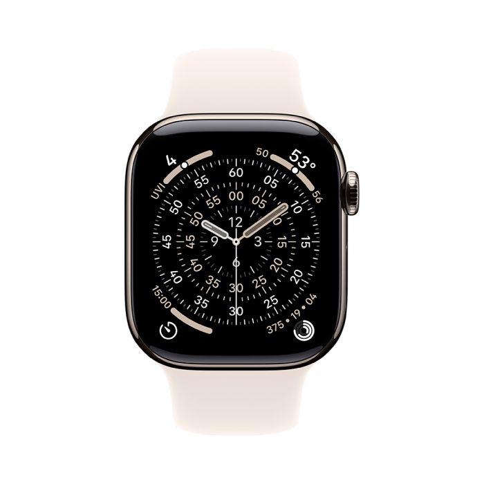 Apple Watch Series 11, 42 mm, Nalural Titanium GPS+Cellular, Starlight Sport Band (S/M)