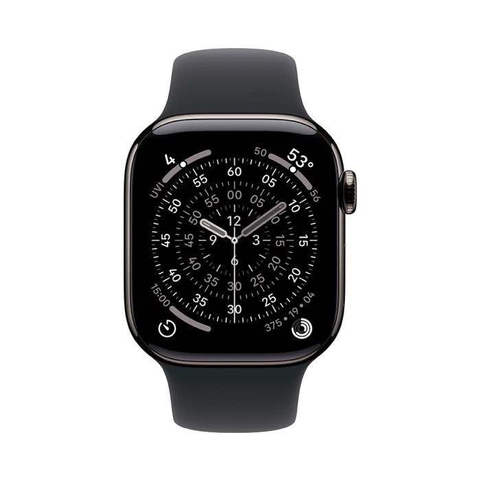 Apple Watch Series 11, 42 mm, Slate Titanium GPS+Cellular, Black Sport Band (S/M)